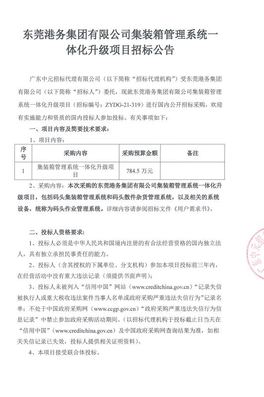 東莞港務集團有限公司集裝箱管理系統(tǒng)一體化升級項目招標公告
