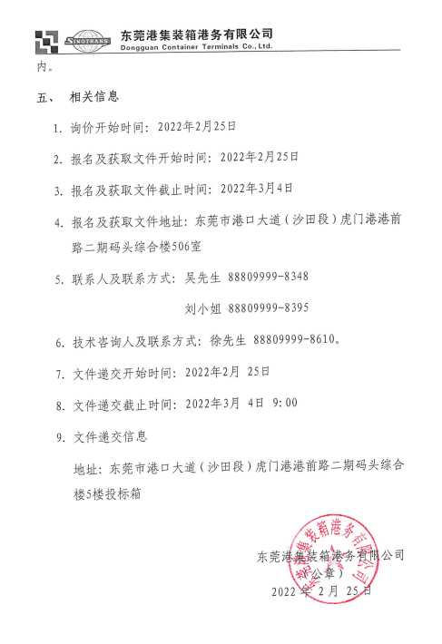 東莞港集裝箱港務(wù)有限公司2022年2月下旬流機(jī)配件采購公開詢價(jià)公告