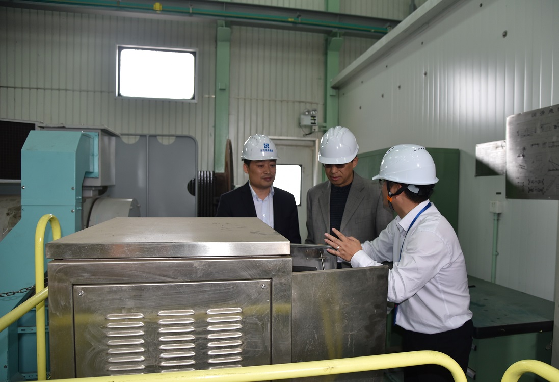 任洪杰主任(右四)現(xiàn)場檢查,萬輝董事長(右三)、郭旭東總經(jīng)理(右二)陪同
